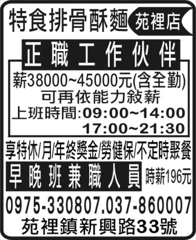 人事求才、信用貸款、店面頂讓、開店優惠、生活娛樂、….分類廣告。