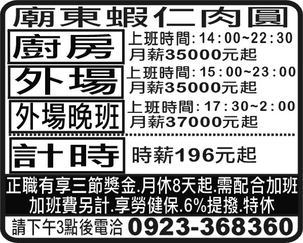 人事求才、信用貸款、店面頂讓、開店優惠、生活娛樂、….分類廣告。
