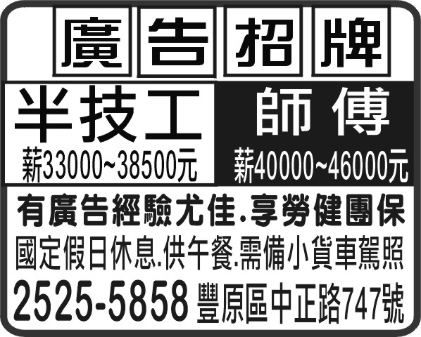 人事求才、信用貸款、店面頂讓、開店優惠、生活娛樂、….分類廣告。
