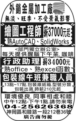 人事求才、信用貸款、店面頂讓、開店優惠、生活娛樂、….分類廣告。