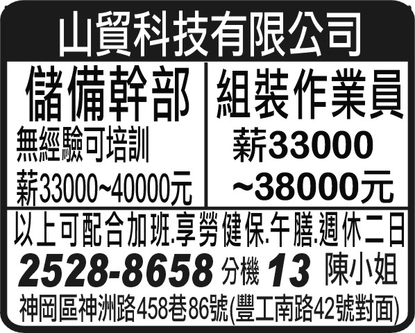 人事求才、信用貸款、店面頂讓、開店優惠、生活娛樂、….分類廣告。