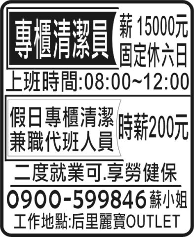 專櫃清潔員 假日專櫃清潔 兼職代班人員