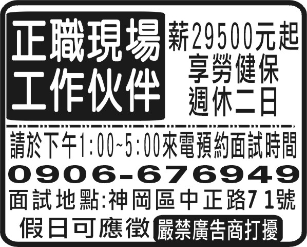 人事求才、信用貸款、店面頂讓、開店優惠、生活娛樂、….分類廣告。