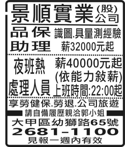 人事求才、信用貸款、店面頂讓、開店優惠、生活娛樂、….分類廣告。