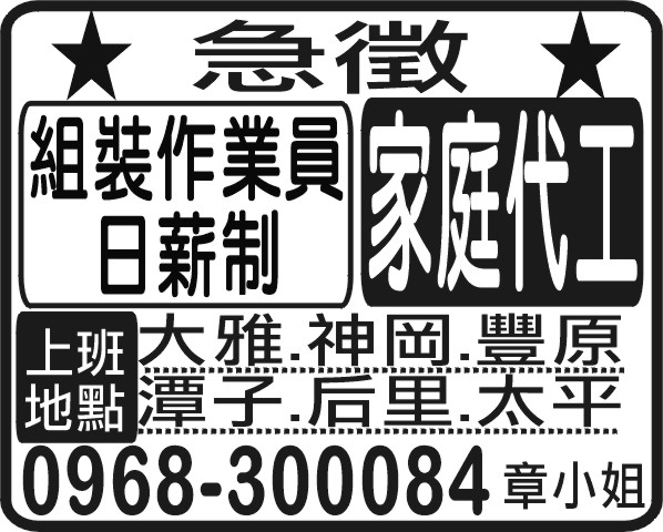 組裝作業員 日薪制 家庭代工