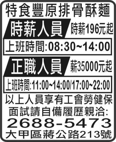 人事求才、信用貸款、店面頂讓、開店優惠、生活娛樂、….分類廣告。