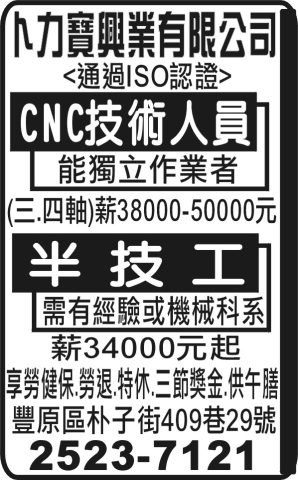 (三.四軸)薪38000-50000元