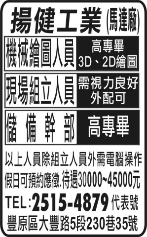 人事求才、信用貸款、店面頂讓、開店優惠、生活娛樂、….分類廣告。