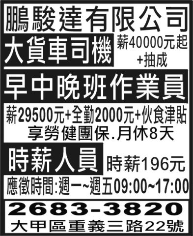 人事求才、信用貸款、店面頂讓、開店優惠、生活娛樂、….分類廣告。