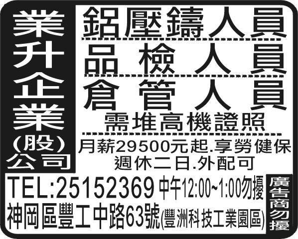 人事求才、信用貸款、店面頂讓、開店優惠、生活娛樂、….分類廣告。