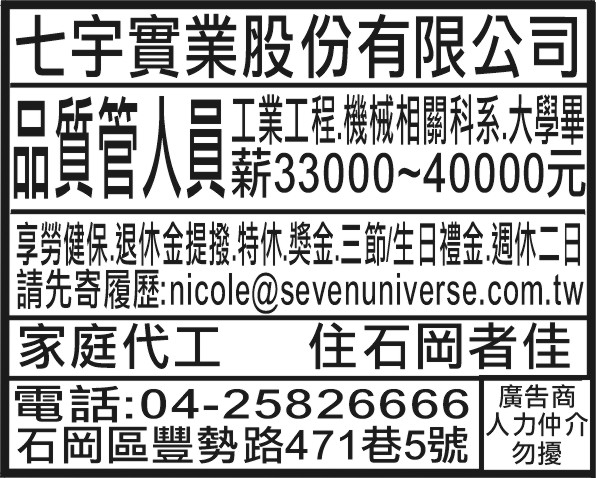 人事求才、信用貸款、店面頂讓、開店優惠、生活娛樂、….分類廣告。